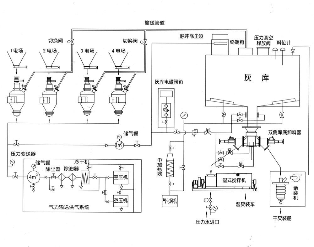 系統(tǒng)既能單臺倉泵單獨輸送,又能多臺倉泵同時輸送; 輸送距離可達1000米以上; 輸送出力大; 經濟性好,效率高。